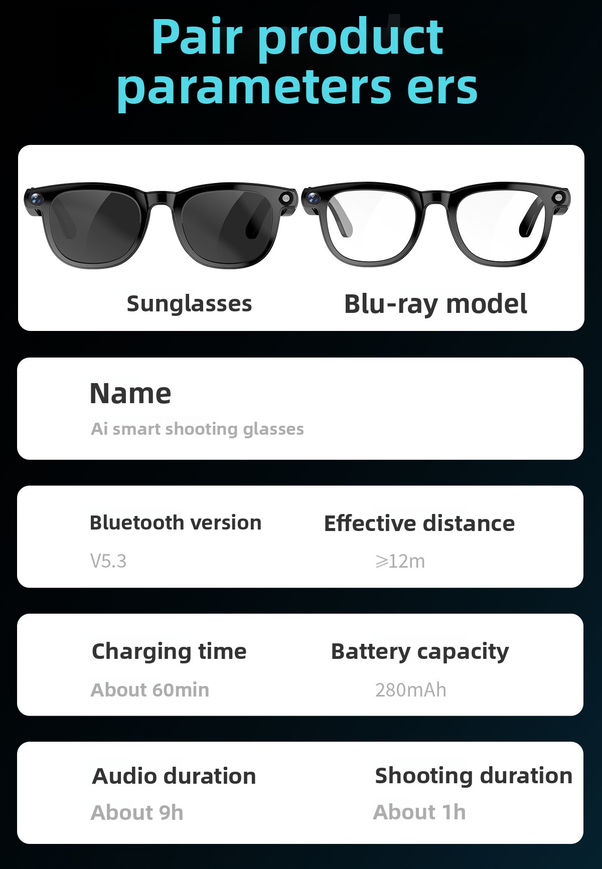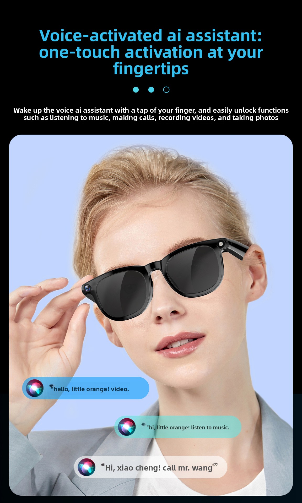 • AI-Powered Smart Glasses: Advanced AI capabilities including photo, video, voice wake-up, music control, and call functions.